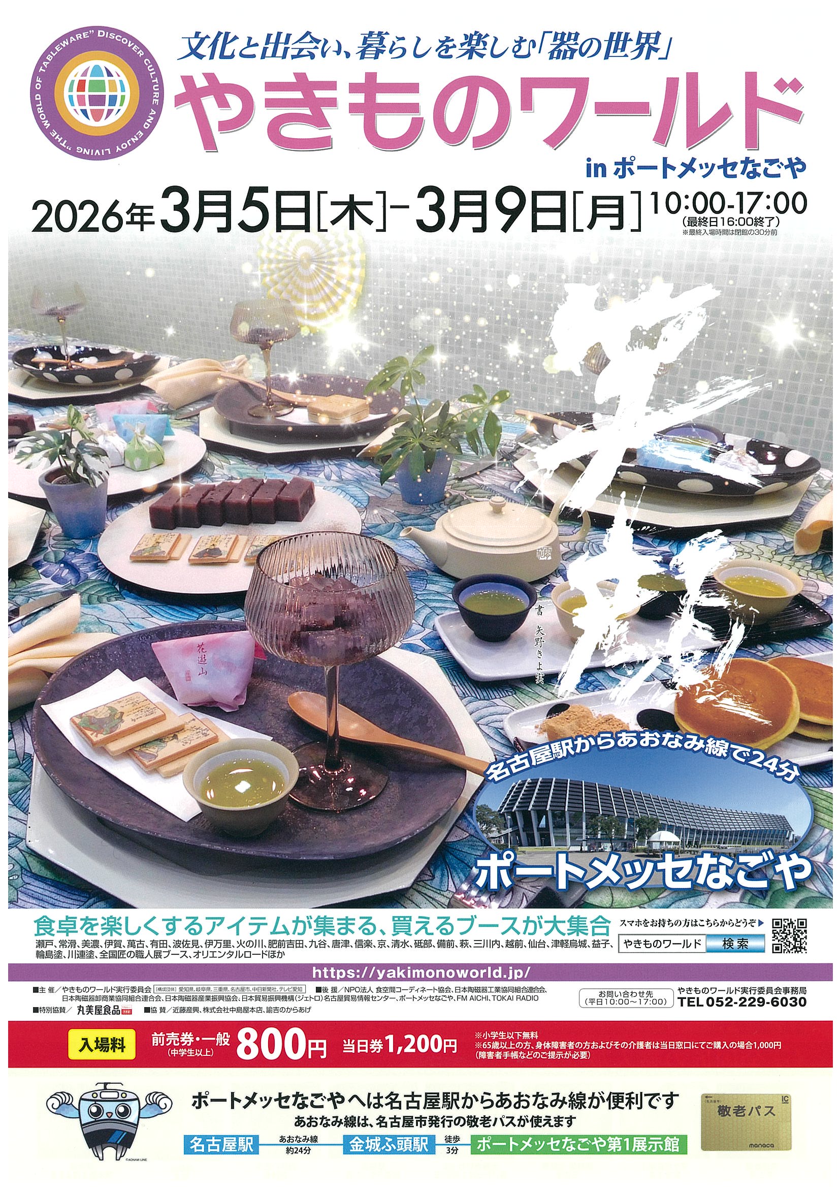 2026年3月5日(木)~3月9日(月)に開催されます「やきものワールド in ポートメッセなごや」に出店致します。